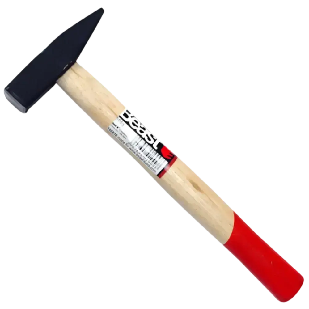 Kalts atslēdznieka āmurs. Lakots koka rokturis ar metāla ķīli. Garums 32 cm, atbilst DIN.