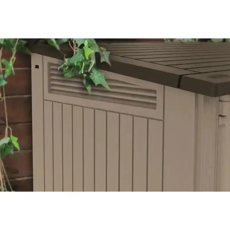 Uzglabāšanas šķūnis STORE-IT-OUT MIDI ir ar vienkāršu un elegantu dizainu, universālu krāsu un virsmas tekstūru, kas atgādina dabisku koku. Iespēja iekšpusē uzstādīt plauktu vēl vairāk uzlabo šī izstrādājuma funkcionalitāti. STORE-IT-OUT MIDI būs neaizstājams visur, kur ir nepieciešams sakārtot dārza piederumus vai mājsaimniecības priekšmetus. Izturīgā konstrukcija pasargā uzglabātos priekšmetus no mitruma, un augstas kvalitātes plastmasas apdare nodrošina produkta ilgmūžību.