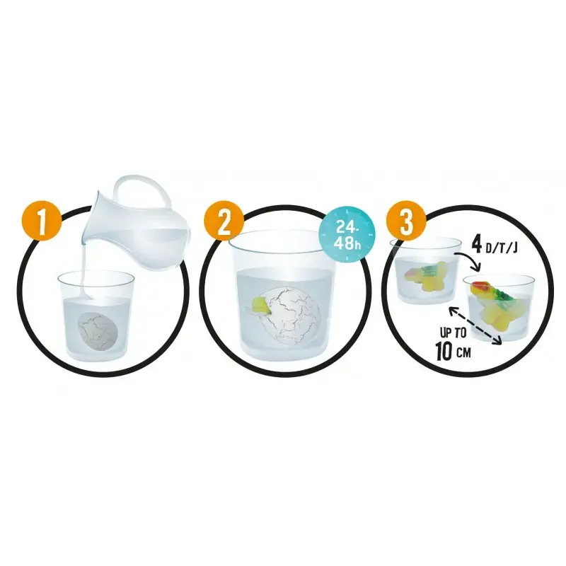 Submerge the egg in water to hatch and grow a dinosaur.