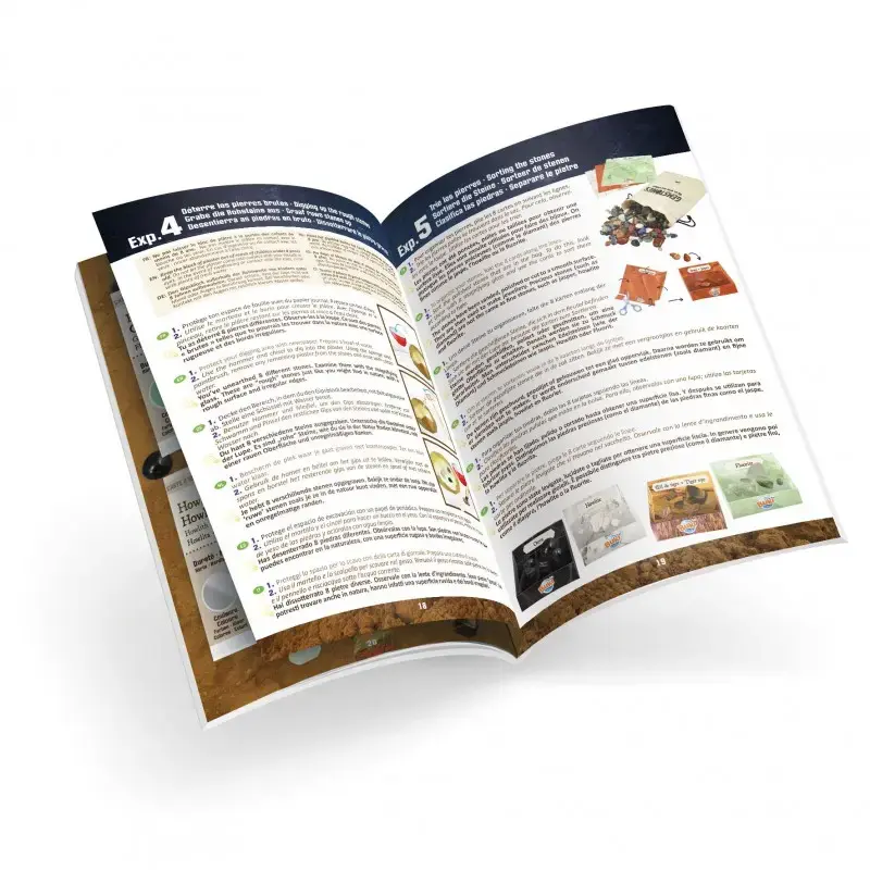 Use the 27 real stones provided to help you become a crystals and precious stones expert. Carry out experiments to discover their properties. Use the tools to unearth 8 real stones. Find polished versions of them in the bag (300 g) and compare them with the magnifying glass.