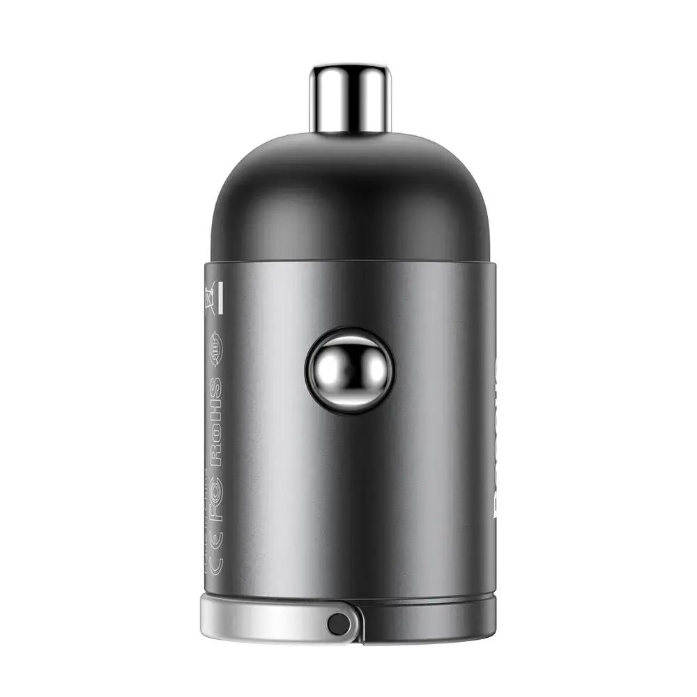 - - Mini ładowarka samochodowa inteligentna Tiny Star USB 30W Quick Charge szary