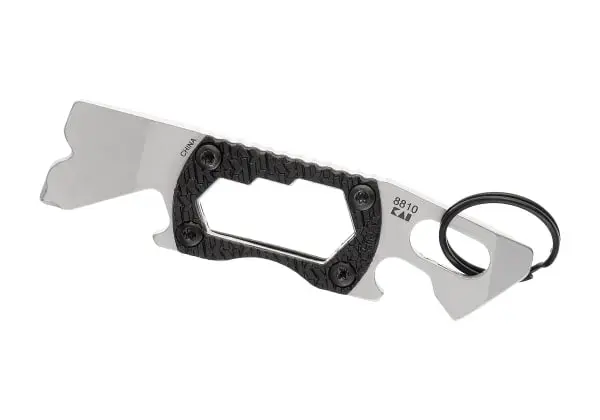 Kershaw PT-2 is a compact steel utility tool designed as a keychain pendant. Features a bottle/can opener, screwdrivers, wrenches, and a miniature crowbar with a Zytel grip.