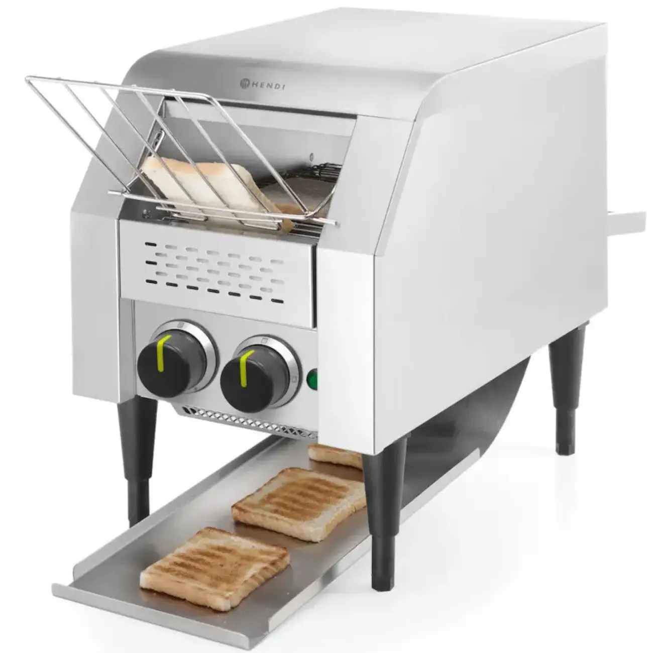 Toster przelotowy pojedynczy o mocy 1340 W marki Hendi to urządzenie, które zostało zaprojektowane z myślą o branży HoReCa. Doskonale sprawdzi się w dużych restauracjach, hotelach i innych punktach gastronomicznych obsługujących dużą liczbę osób. Dwa oddzielne elementy grzewcze umożliwiają ciągłe opiekanie krojonego chleba transportowanego przez urządzenie za pomocą przenośnika z możliwością regulacji prędkości posuwu.