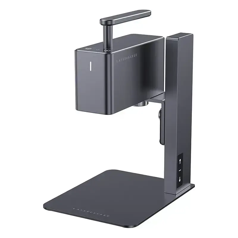 Despite its small size, the LaserPecker 2 is extremely powerful. Its compact design makes it easy to carry and allows engraving in places that are difficult to reach with other devices. The electric stand is another asset of the engraver. It allows precise adjustment of the focal length using side buttons, which increases the accuracy and quality of engraving. In addition, the ability to hold the laser at the desired angle allows for optimal adjustment to the engraved surface.