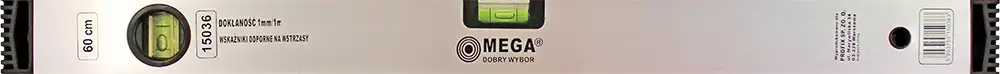 Līmeņrādis ar diviem indikatoriem - horizontālu un vertikālu. Korpuss ir izgatavots no viegla un izturīga alumīnija, kas atvieglo instrumenta lietošanu. Līmeņrāža garums 60 cm, precizitāte 1 mm.
