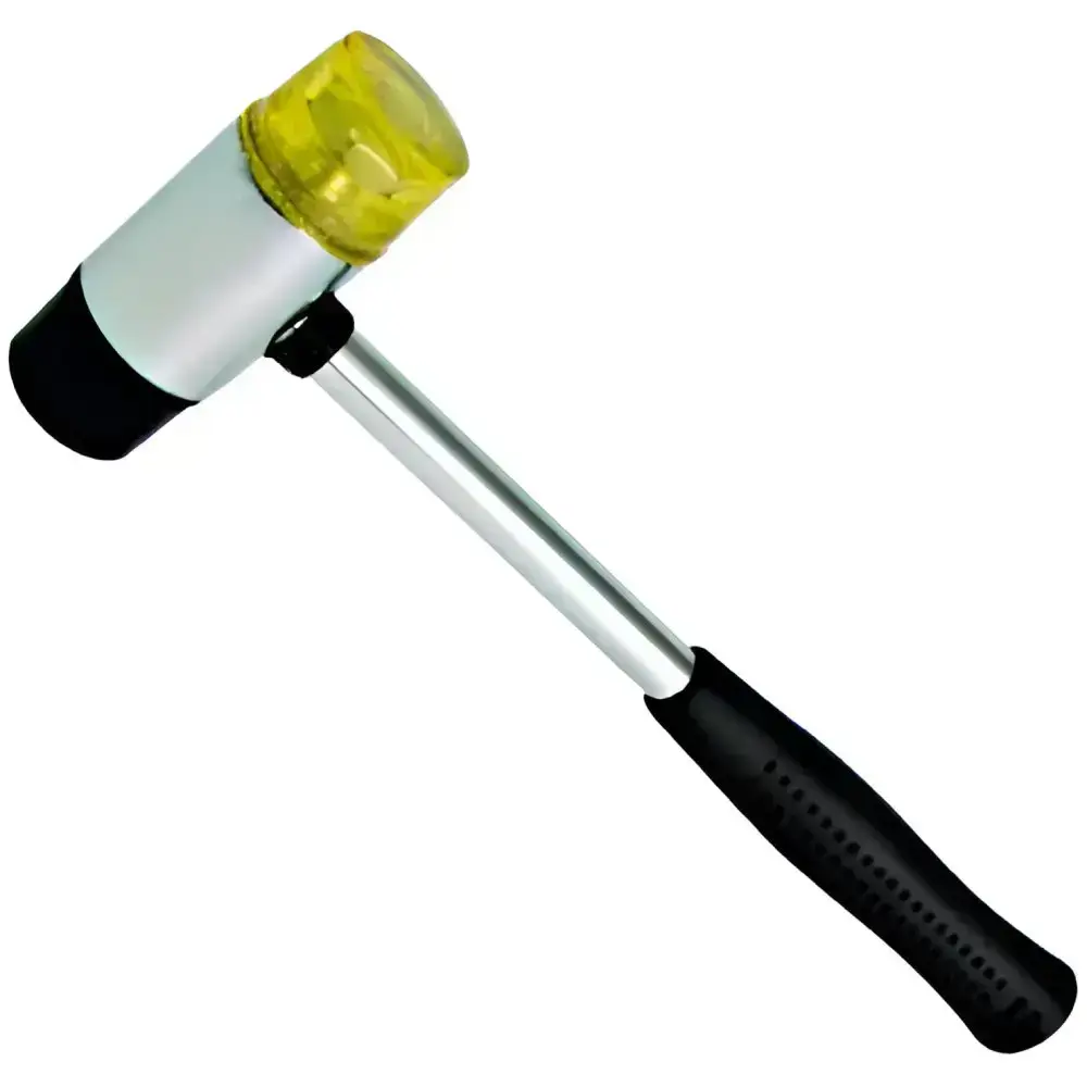 Āmurs ar maināmām plastmasas un gumijas galvām. Metāla kāts ar neslīdošu gumijas uzmavu. Galvas izmēri 90 x 35 mm.