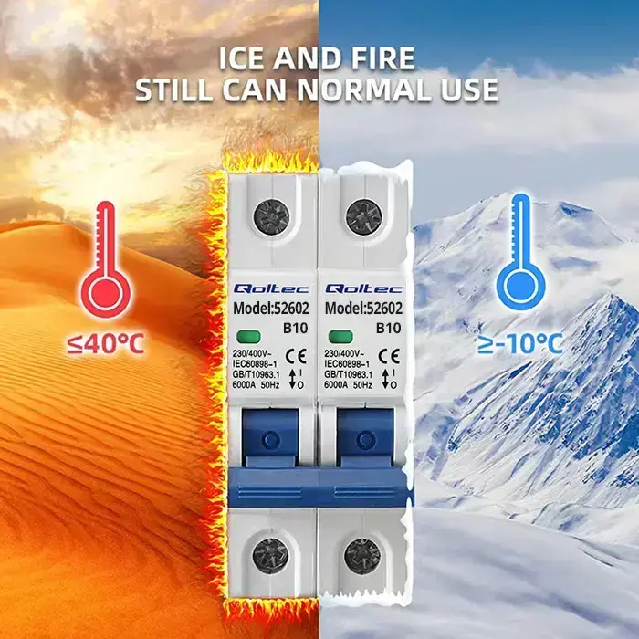 The Qoltec brand overcurrent circuit breaker will effectively protect and safeguard the installation from circuit damage and the connected electrical consumers from the effects of overload and short circuit. They work on the principle of automatically switching off the current when the current exceeds a safe level.