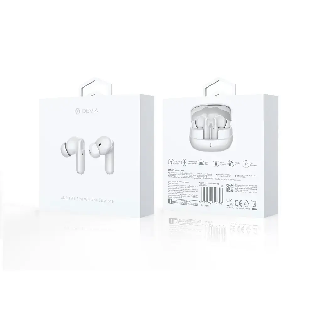 Devia Bluetooth earphones TWS Pro 1 white with ANC