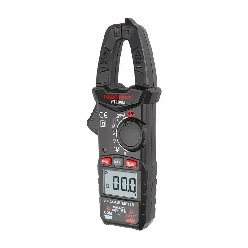The HT200B compact clamp meter provides precise measurement of various parameters. It is equipped with a backlit HD display and jaws, which size is up to 18mm. Despite its small size it impresses with functionality. For its power supply it requires 2 AAA 1.5V batteries, which must be purchased separately - they are not included in the set.