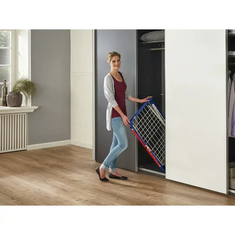 Žāvētājs ir tikai 55 cm šaurs, tādēļ to ir ērti pārvietot cauri vannas istabas vai balkona durvīm. Tikai ar pāris kurstībām to var viegli un ātri uzstādīt un salikt, kā arī tā uzglabāšana neaizņem daudz vietas, kas ļauj būtiski ieekonomēt vietu.