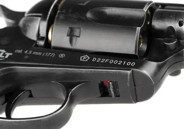Double Aces dueļa komplekts, CO2 darbināms, 4.5mm kalibrs, 6 šāvienu aptveres ietilpība, 3 Džoulu enerģija.
