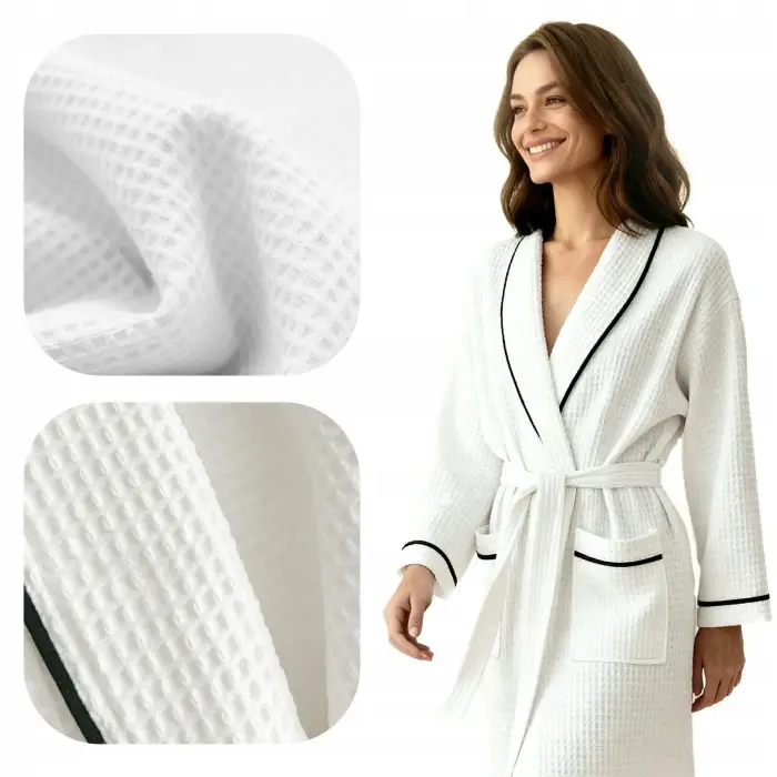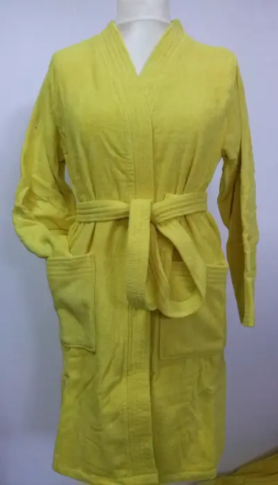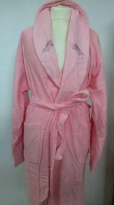 Sieviešu peldmētelis 214 L aprikožu krāsā, ar rāvējslēdzēju un kabatām, reljefs raksts, 100% kokvilna, 7/8 piedurknes