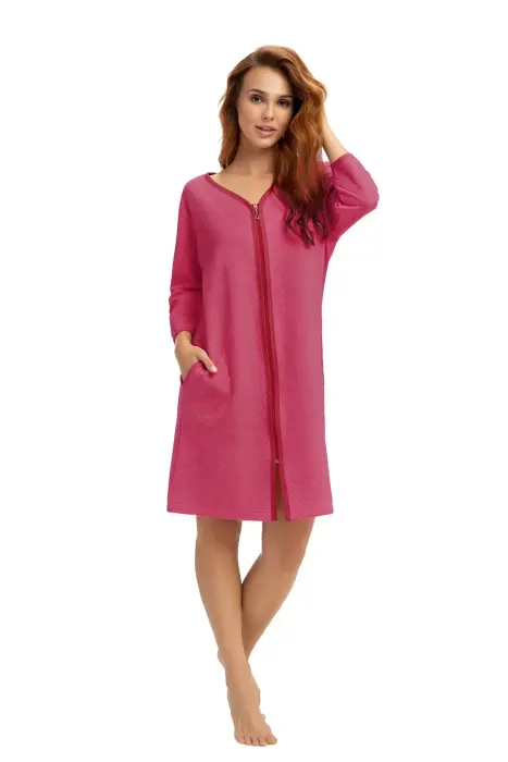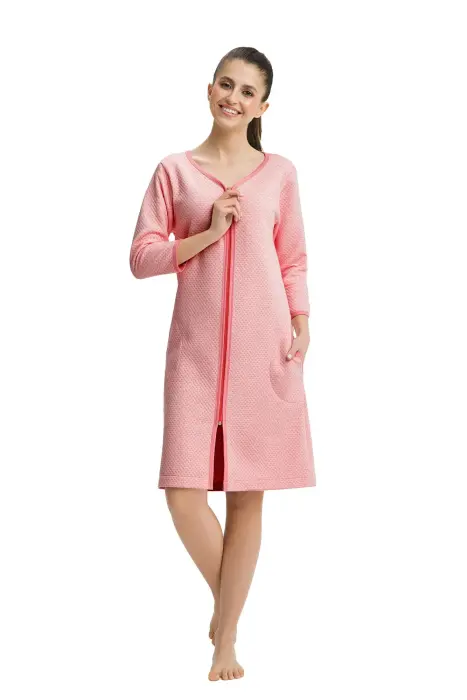 Sieviešu peldmētelis 214 L koraļļu krāsā, ar rāvējslēdzēju un kabatām, reljefs raksts, 7/8 piedurknes, kokvilna
