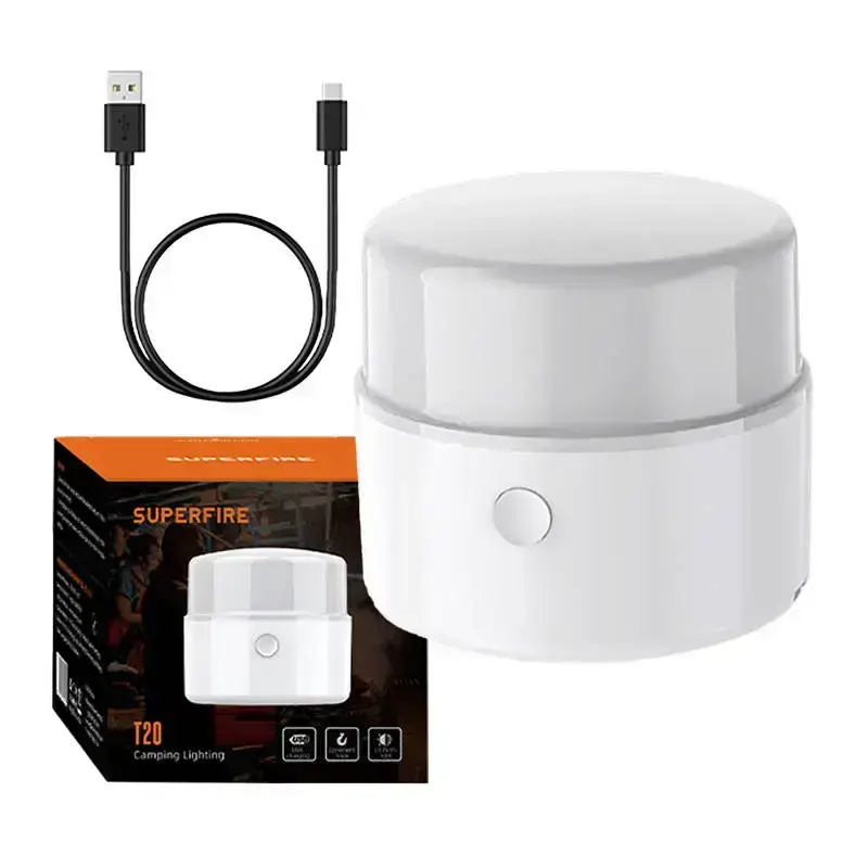 The lamp is light and small - its dimensions are only 80x80x74 mm. So you can easily fit it in your luggage and take it with you to a tent or on a camper trip. The device does not take up too much space, so you can use it almost anywhere you need it. T20 is optimal lighting while saving space!