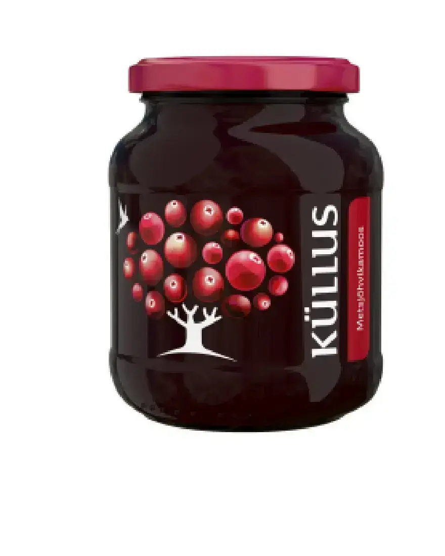 KULLUS metsjõhvikamoos marjadega, 400g. Koostisosad: suhkur, metsjõhvikad (35%), vesi, paksendajad (tärklis, pektiin), happesuse regulaator (sidrunhape). Valmistatud 35g marjadest 100g toote kohta. Suhkrusisaldus 50g 100g toote kohta. Hoida jahedas ja kuivas kohas. Pärast avamist hoida külmkapis ja tarbida 5 päeva jooksul. Päritolu: Eesti.