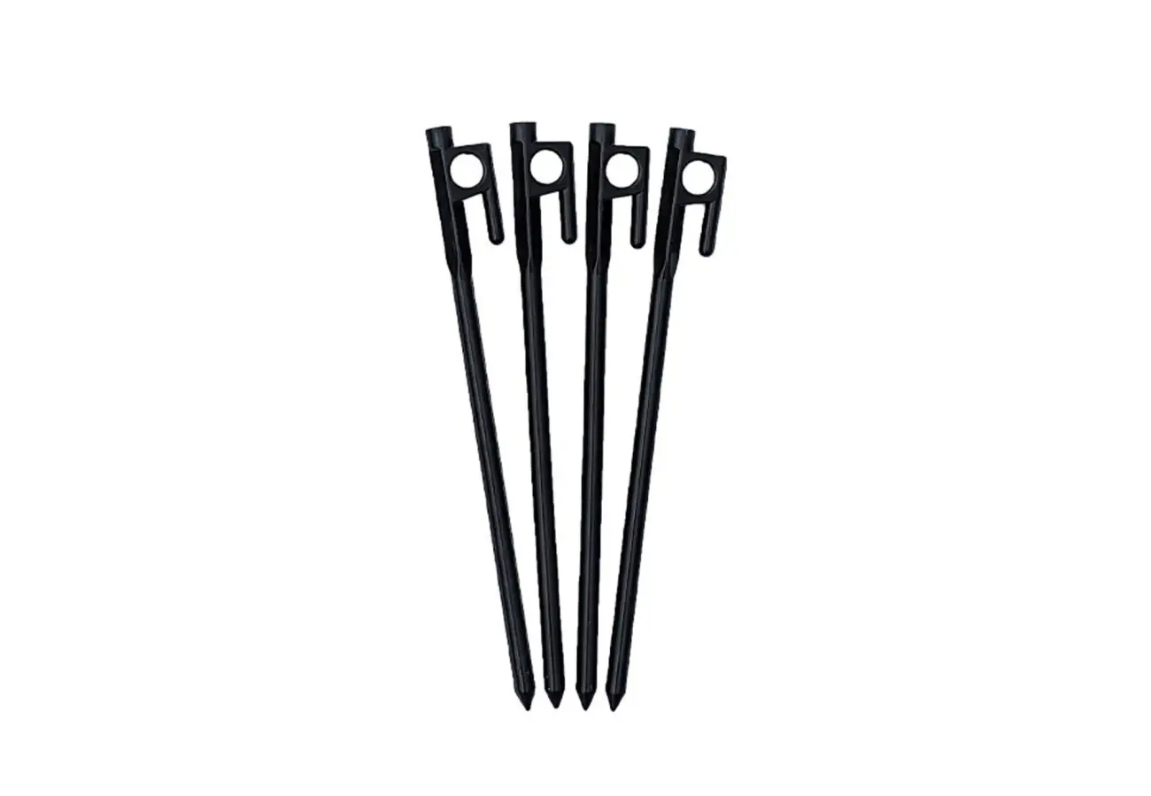 With a hooked top to lock the groundsheet, a sharp point