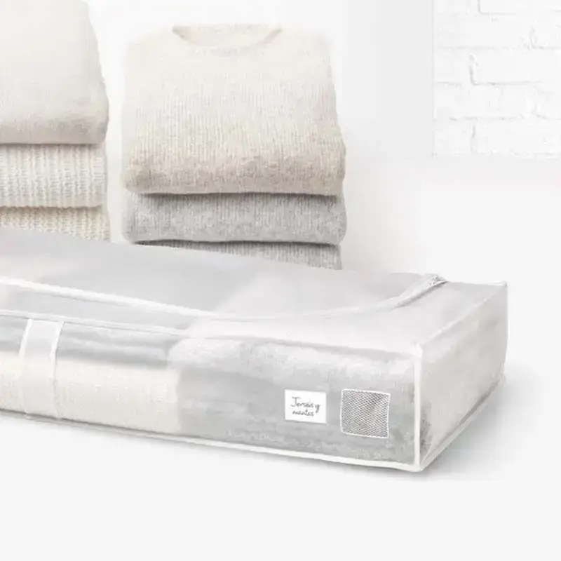 Läbipaistvast PVA-materjalist riidekast, topeltlukuga ja hingava võrkaknaga. Ideaalne riiete ja tekkide hoiustamiseks ning tolmu eest kaitsmiseks. Mõõdud: 45x103x16 cm.
