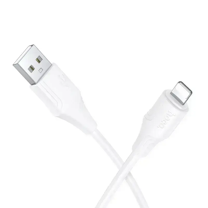 The Hoco X124 USB-A to Lightning 2.4A silicone cable in white is a practical and durable accessory that is perfect for everyday charging of Apple devices. The soft, smooth silicone coating prevents tangling, increases flexibility, and protects the cable from breaking, ensuring the cable remains durable even during intensive use.