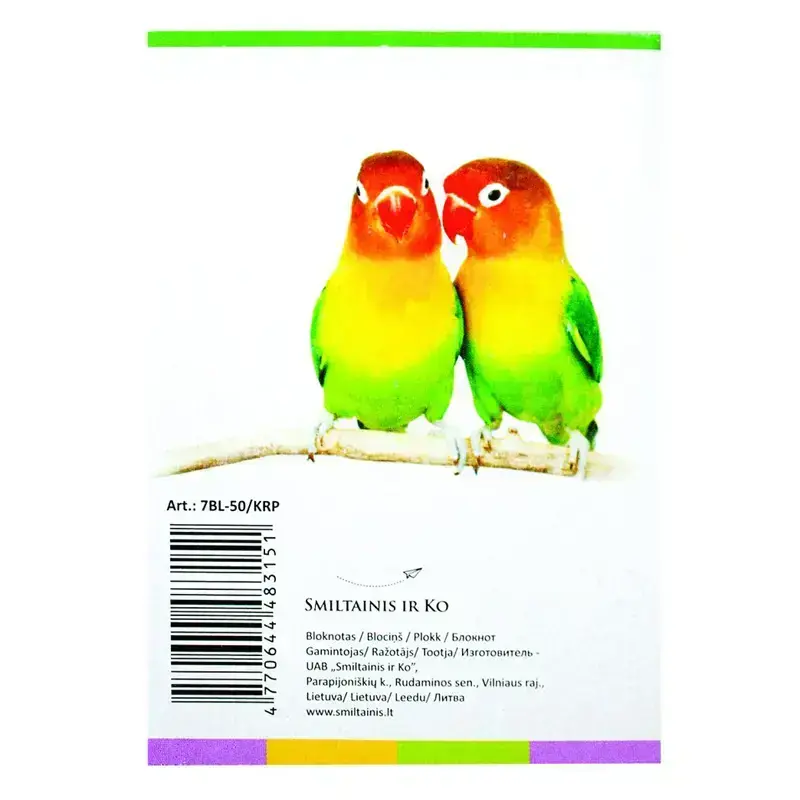 • Ar virsējo vāku • vāks - asorti • Ar augšā noplēšamām lapām • Līmēts iesējums • Izgatavots no 55 g/m2 papīra • Rūtiņu • 50 lapas