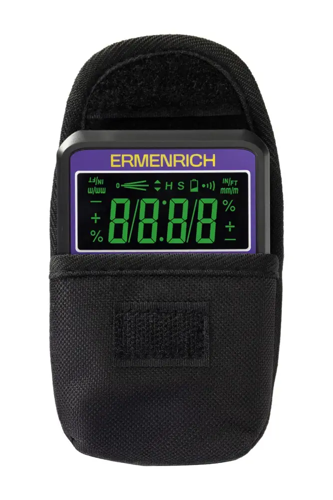 Meet the Ermenrich Verk LQ40, a magnetic digital level that is suitable for a wide variety of applications. It can be used to level metal structures in construction and repair work as well as in manufacturing in order to measure the slope of some elements or sharpen knives. The slope is measured in a range of 0–360° (4x90°), and the buzzer helps you to precisely align the object horizontally or vertically. The measurements are given in degrees, percent, or other units of measurement – can be selected by the user.