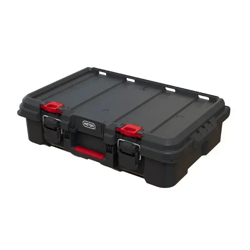 Tööriistakast on konstrueeritud teie tööriistade ohutust silmas pidades - kaanel on spetsiaalne IP54 tihend, mis kaitseb sisu niiskuse ja tolmu eest. Tugevad lukud tagavad, et kaas ei avane transpordi ajal. Täiendavaks eeliseks on võimalus sulgeda kast tabalukuga. Käepide on töödeldud pehme kummiga, mis tagab mugavuse kandmise ajal,