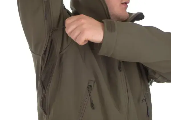 T.O.R.D. Softshell Hoody AR jope, mis on valmistatud 3-kihilisest laminaadist, millel on elastne polüestrist väliskangas, tuulekindel hingav membraan ja fliisist vooder. Varustatud reguleeritava kapuutsi, kaenlaaluse ventilatsiooni ja mitme lukuga taskuga.