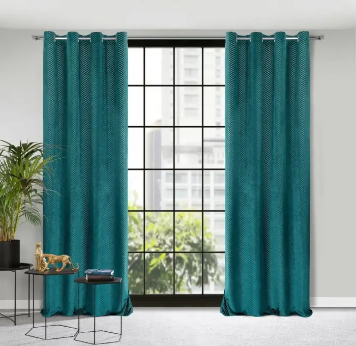 Zasłona 140x250 Lussi turkusowa ciemna gotowa na przelotkach welurowa z żakardowym wzorem Eurofirany