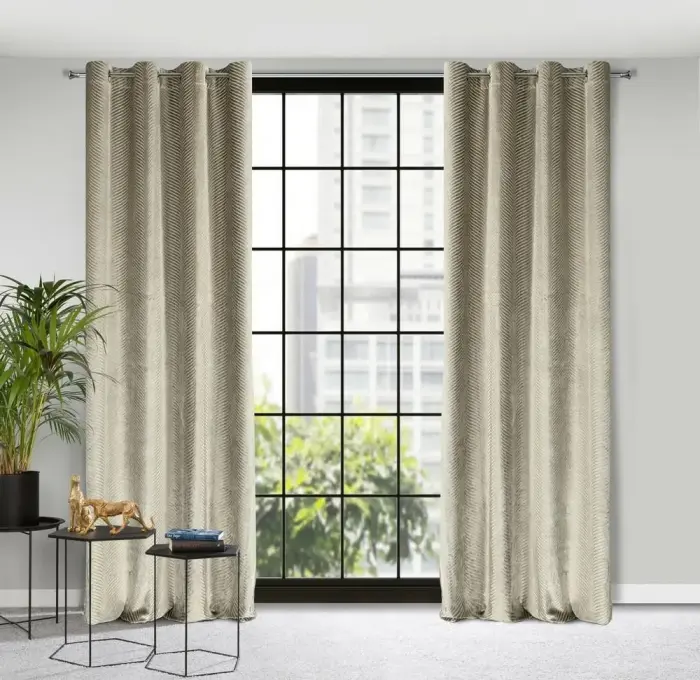 Zasłona 140x250 Lussi beżowa ciemna gotowa na przelotkach welurowa z żakardowym wzorem Eurofirany