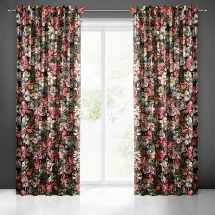 Eurofirany sametkardin Stella 140x250 cm, must/kuldne lilleline, öösidega