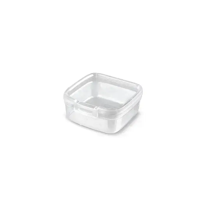 Plastic container - lightweight, very spacious and suitable for transporting food. The container has built-in clips that will ensure its closure. Capacity: 0.9L. Material: plastic.