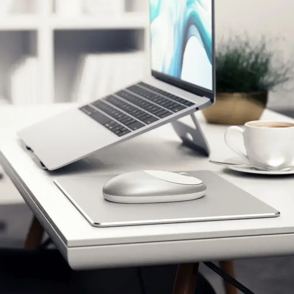 The curved, ergonomic shape of the M1 mouse fits perfectly in the hand, suitable for both right- and left-handed users. The brushed aluminum finish complements any modern workspace.