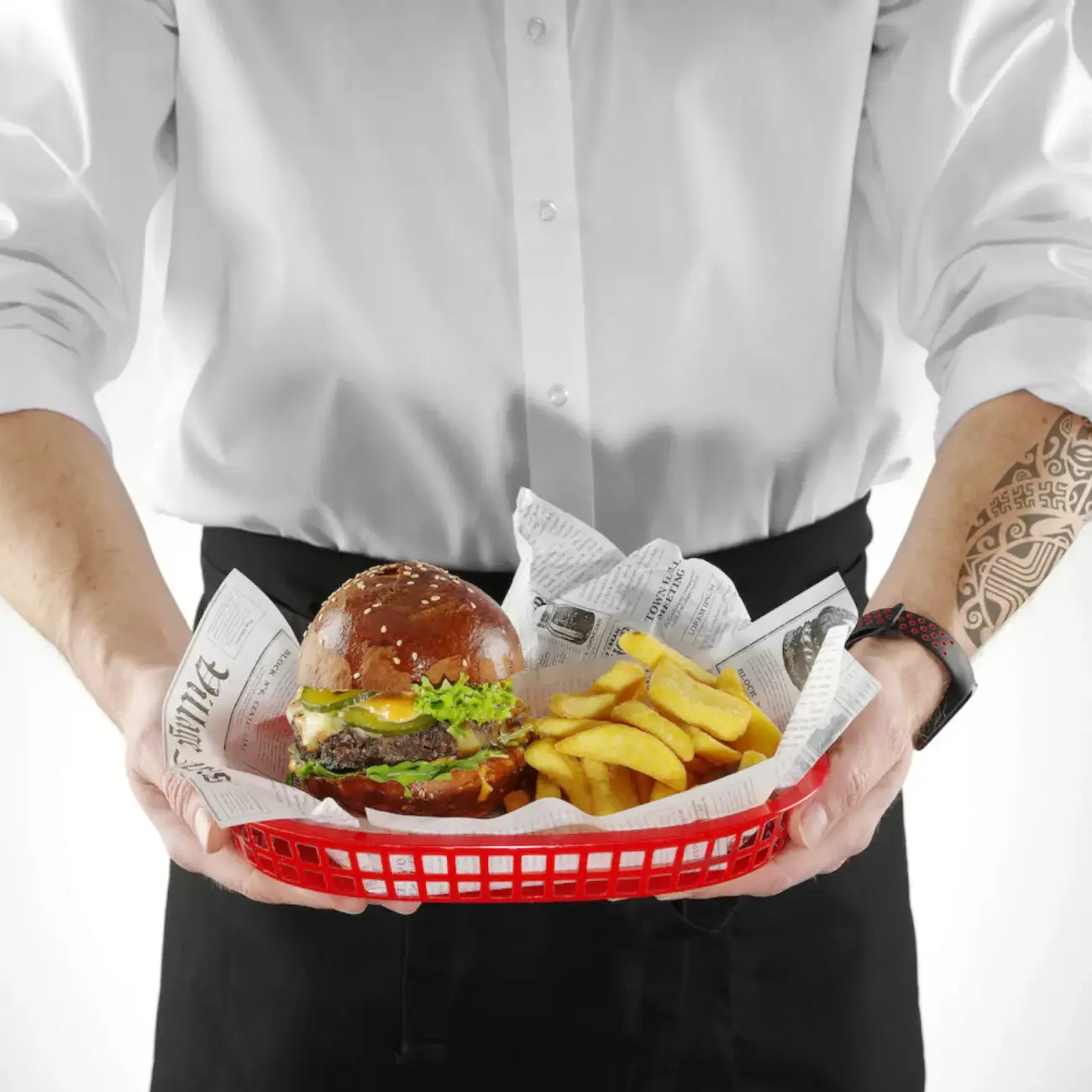 Oval bread basket by Hendi, perfect for fast food restaurants, snacks, or cutlery. Made of durable polypropylene, dishwasher safe, and stackable for easy storage. Set of 6 pieces.