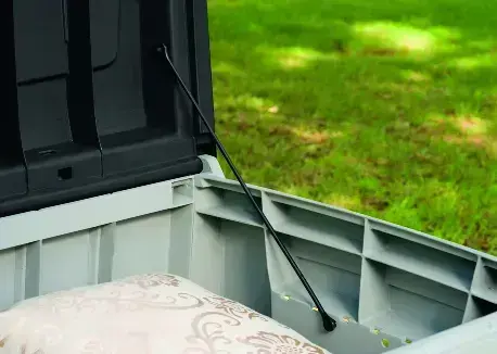 Stylish two-tone colouring and smooth panel appearance. A storage box that is a handy addition to any patio or garden. Capacity up to 340L. The box keeps your items dry thanks to its robust construction that won't fade, crumble or peel in the weather. The storage box is designed to seat two adults, making it practical and suitable for family and friends gatherings.