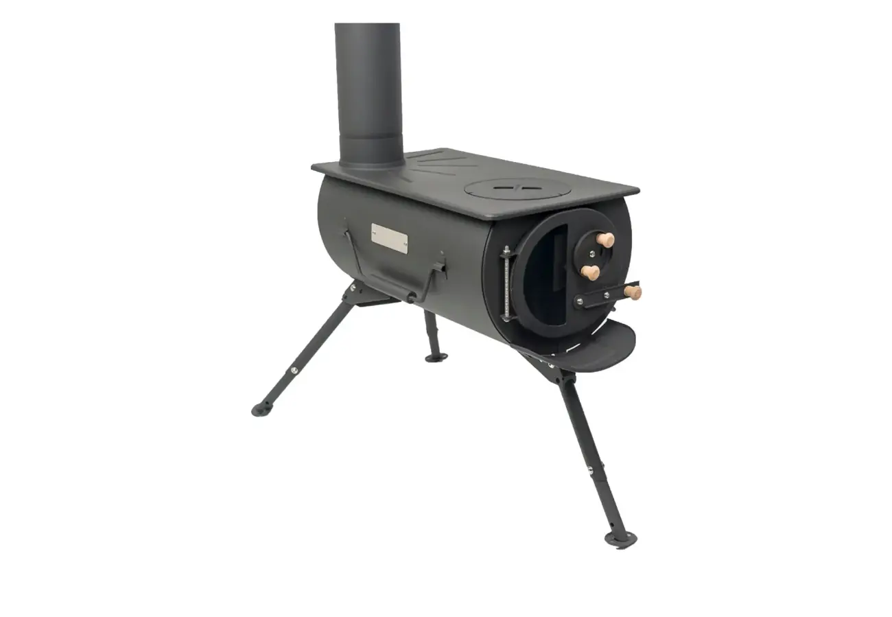 The Frontier Plus Portable Stove is the new and improved big brother of the wildly popular Frontier Tent Stove. The Frontier Plus comes with adjustable legs, ventilation control, a wider flue pipe, and a glass window so you can monitor your fire from a distance and enjoy the ambiance of a campfire safely inside your canvas tent.