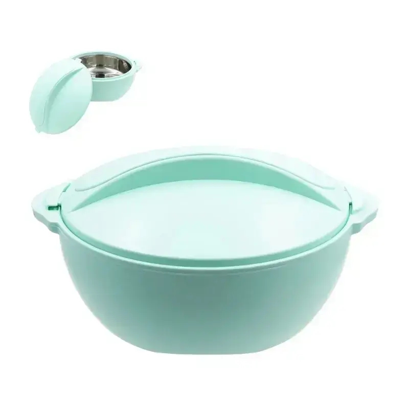 The thermos is practical to use and is designed to keep food warm or cool for about 5 hours. The inside of the pot is made of stainless steel, the outside is made of plastic. The thermos should not be used in the oven or dishwasher.