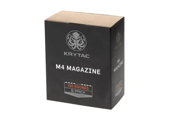 5 vienetų universalių mid-cap dėtuvių rinkinys iš Krytac, skirtas AR-15 arba STANAG suderinamiems airsofto ginklams. Pagaminta iš patvaraus polimero, 150 šovinių talpa, tekstūruotas paviršius geresniam sukibimui.