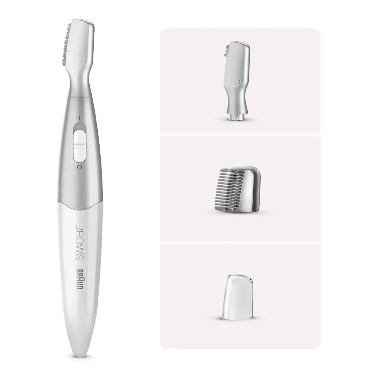 Braun Mini Precision Trimmer FG1106. Quick & precise Trim & style eyebrows. Additional features such as corded/cordless and dry. Comes in colour white/silver.The Braun Mini Precision Trimmer for eyebrows is an ultra precise brow hair trimmer for women. Trim shape and style anytime anywhere. Small and compact in size for easy portability and use on-the-go. Ideal for finishing touches and last-minute detailing. This multifunctional device can also be used to remove unwanted facial hair anywhere on the face.