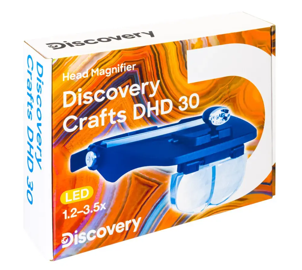 Discovery Crafts DHD 30 is a head magnifier with interchangeable combinable lenses. You can choose the most optimal magnification for your task, it does not occupy your hands, and has built-in illumination. The magnifier has a short focal length, so it is best suited for repair and assessment works as well as for handicrafts. It can also be helpful in reading text in small print.