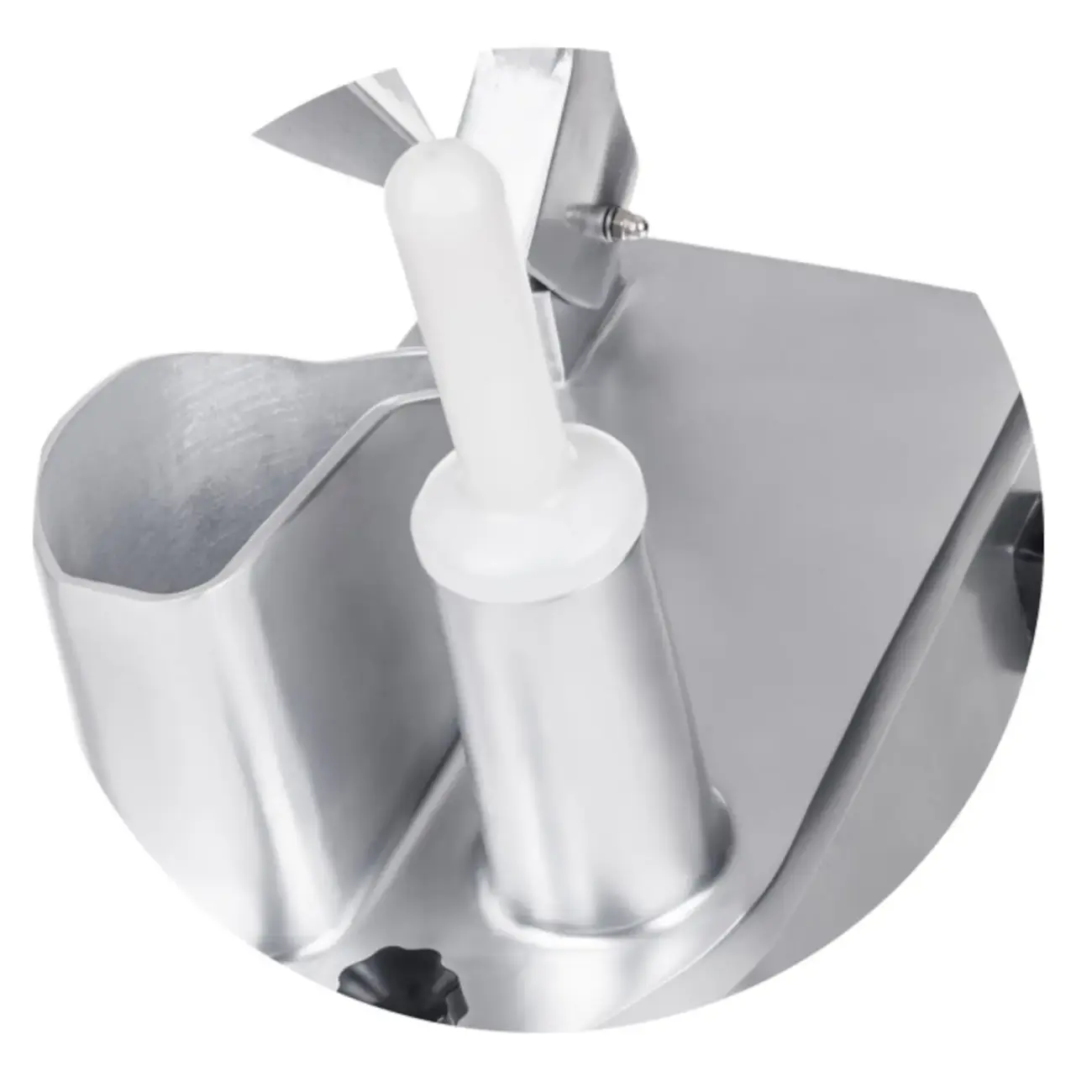 Popychacz warzyw i owoców wykonany z plastiku przeznaczony do szatkownicy / krajalnicy Royal Catering. Długość popychacza wynosi 30 cm.