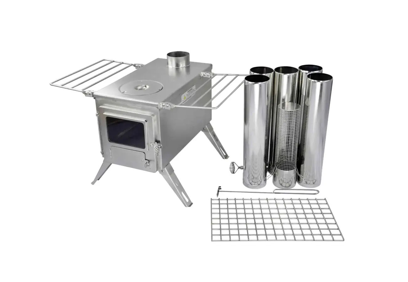 The Winnerwell® Nomad Large wood stove is carefully crafted from 304 stainless steel, making it portable, easy to use, and durable. The Winnerwell Large series is the largest stove in our collection. It’s perfect for heating and cooking in Tentipi tents, as well as recreational shelters such as wall tents, tipis, cabins, tiny houses, patios, and more. The Nomad stove is an ideal companion for camping and outdoor recreation.