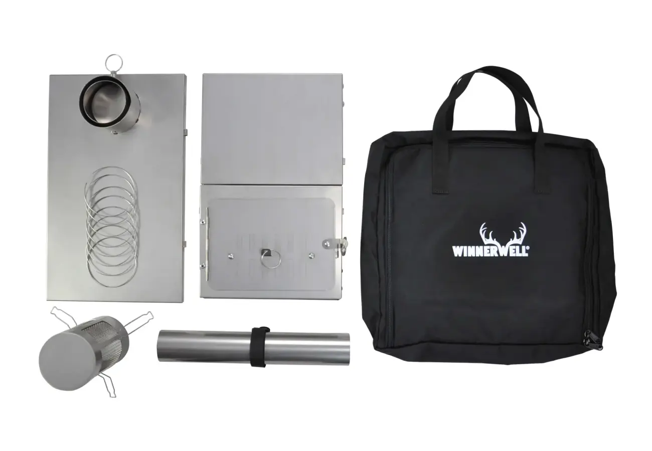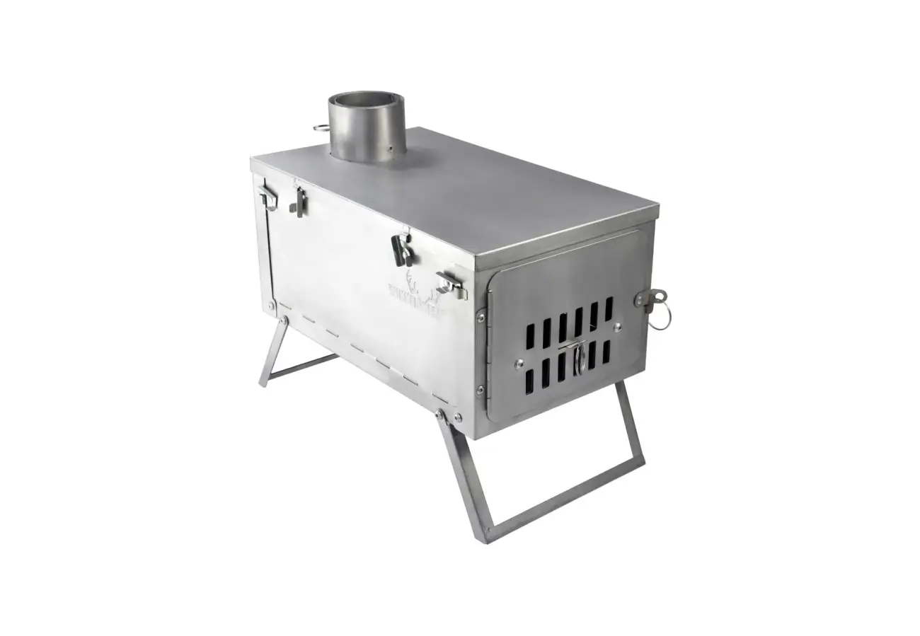 Ultralight and ultra-packable, the Winnerwell® Fastfold Titanium Wood Burning Camping Stove is the premier ultralight stove for backcountry skiers, hunters, and explorers. Ideal for lightweight stove-compatible shelters like pyramid and teepee tents, the Fastfold Titanium Stove folds flat and the flue pipe rolls into a compact tube—the entire kit weighs only 4.4lbs. The Fastfold design sets a new standard in reliable, hassle-free set-up. There are