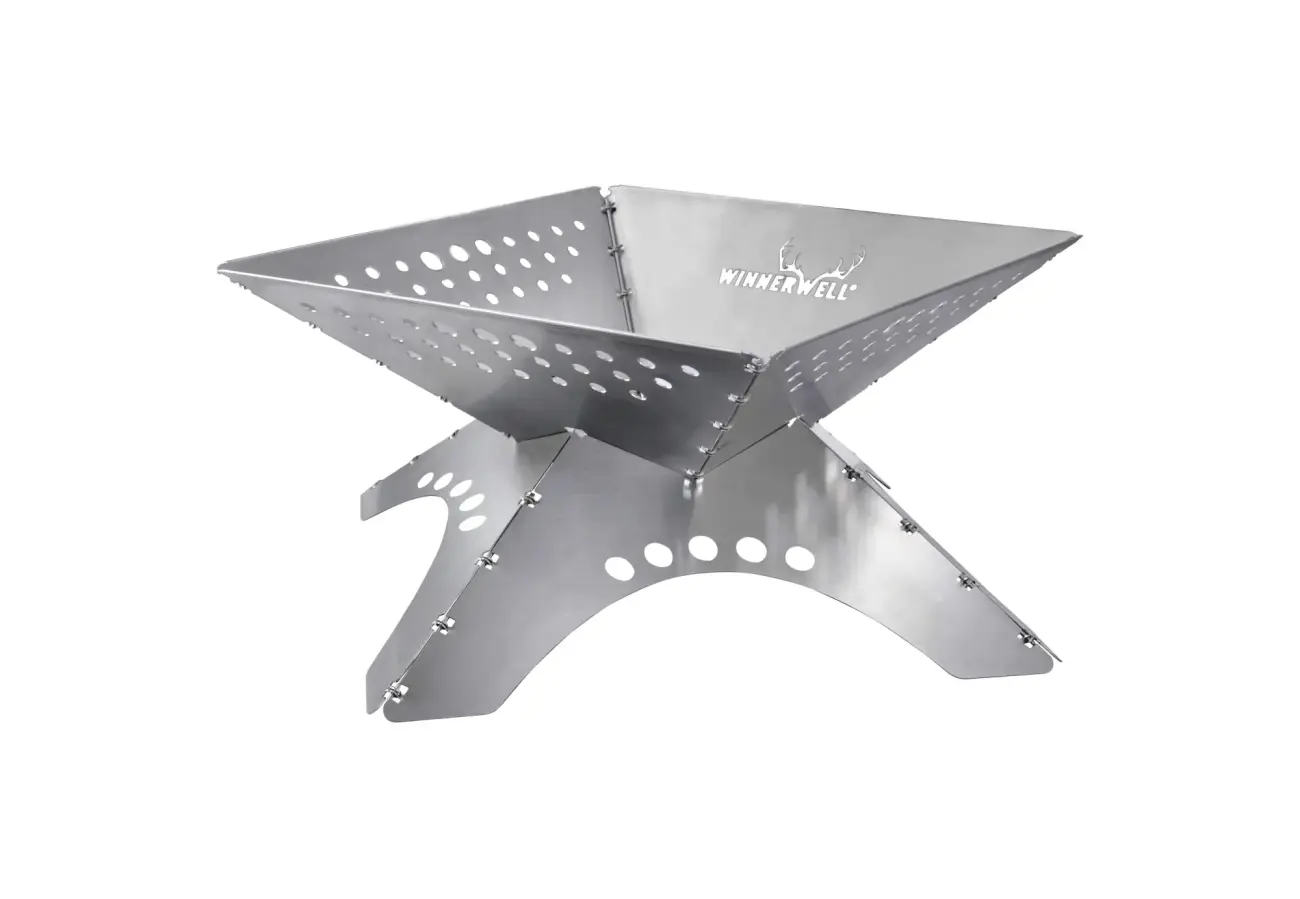 Winnerwell® Flat Firepit is a truly unique, sturdy, compact, and portable fireplace in one-touch design for quick assembling and storage. A variety of cooking and grilling accessories can be used on top of Winnerwell® specially-designed Triangular Grates (the grates are sold separately).