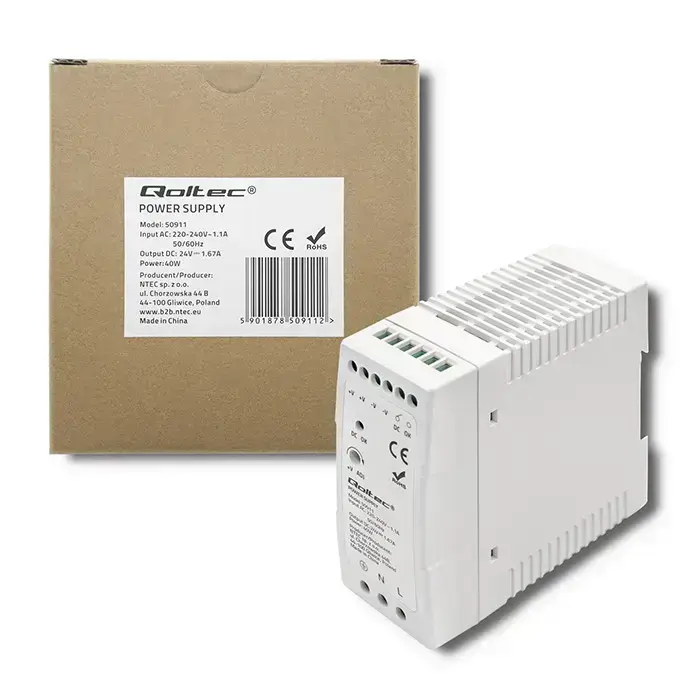 Блок питания Qoltec на DIN-рейку | 24W | 24V | 1A | Белый | Slim