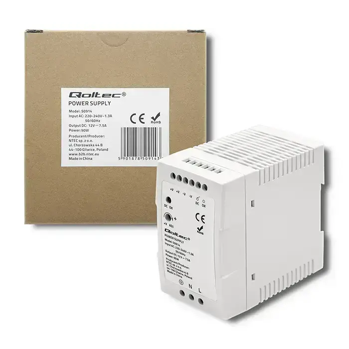 Промышленный блок питания Qoltec на DIN-рейку | 75W | 12V | 6.3A