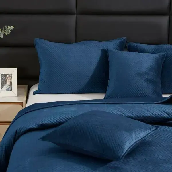 Велюровое покрывало на кресло Maya 80x160 см, темно-синее с геометрическим узором крестиков