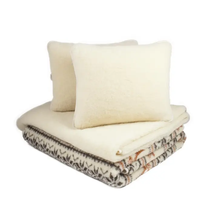 Комплект постельного белья из шерсти мериноса - одеяло 175x200 см, 2 подушки 50x60 см, шерстяная простыня 175x200 см - Экрю