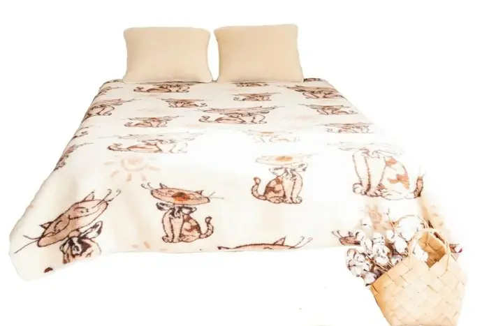 Комплект постельного белья из шерсти мериноса - одеяло 135x200 см, 1 подушка 50x60 см, шерстяная простыня 135x200 см - Котята бежевый коричневый