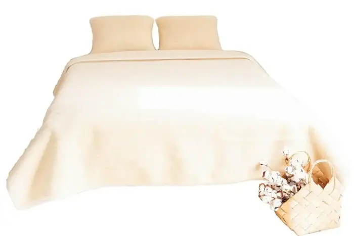 Комплект постельного белья из шерсти мериноса - одеяло 200x200 - 2 подушки 50x60 - шерстяная простыня 200x200 - Кремовый