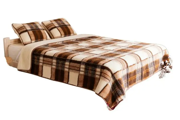 Комплект постельного белья из шерсти мериноса - одеяло 155x200 см, 2 подушки 50x60 см, шерстяная простыня 155x200 см - Клетка коричневый