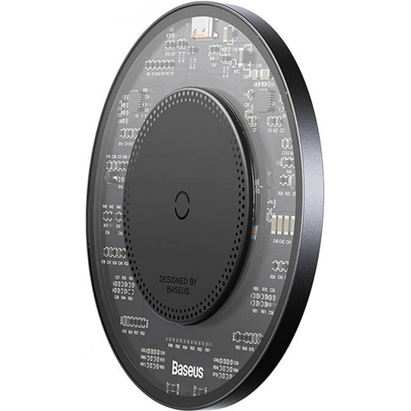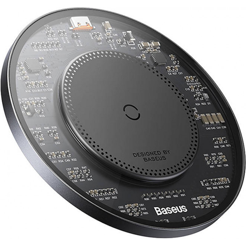Baseus Simple 2 wireless inductive charger, 15W with USB-C to USB-C cable (black)Baseus Simple 2 allows you to quickly and conveniently charge your equipment without unnecessary cables. The charger uses 15W max power and is wireless. Thanks to its thoughtful design, it ensures safe use and works with Android and iOS. In addition, it stands out with a modern, transparent design that attracts attention. Safe chargingCharge your device without worrying about damage. The Baseus inductive charger uses a smart chip and Smart Trickle Charging technology to protect your equipment from overheating and overcharging. In addition, Simple 2 offers protection against overvoltage, short circuit, overcurrent, electromagnetic field, etc. Wide compatibilityThe Baseus charger can be used by both iOS and Android followers. The Simple 2 offers an output power of 15W/10W/7.5W/5W, making it suitable for a variety of devices. It will renew the energy of the iPhone 14 Pro Max series, Huawei Mate 40 and Samsung S22 Ultra, among others. In addition, you will successfully use it to charge TWS Airpods and other such devices that support wireless charging. Thoughtful designThe charger was created from aerogel, which prevents overheating and is lightweight and durable. The thickness of the product does not exceed 6 mm, so it does not take up much space. Moreover, the use of copper translates into stable charging, and the range of up to 5 mm allows you to charge your smartphone in a case. In addition, the green indicator will inform you about the status of Simple 2. Using the product will also not be a problem - just place the device on the charger (for iPhone 14 series). Included